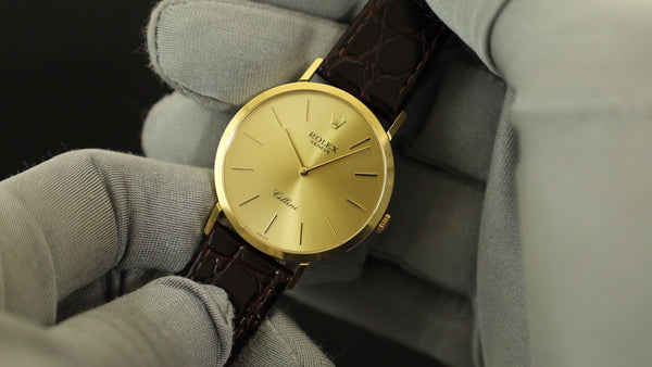 ロレックス チェリーニ 4113 手巻き Cal.1600 750 革 純正尾錠(GP)シャンパン文字盤 42番台(1974年)オーバーホール済み