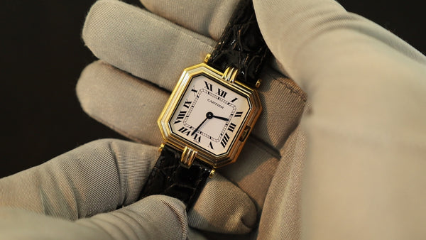SOLD カルティエ サンチュール LM クォーツ Cal.81 750YG 革 純正尾錠(GP)ホワイトローマン文字盤 オーバーホール済み