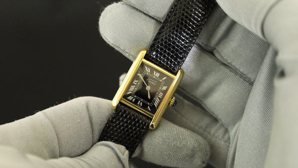 カルティエ マストタンク SM 手巻き Cal.- SV925 革 純正尾錠(GP)オニキス文字盤 1976年頃~1981年頃 オーバーホール済み