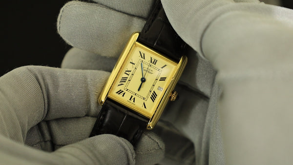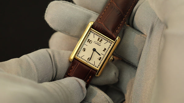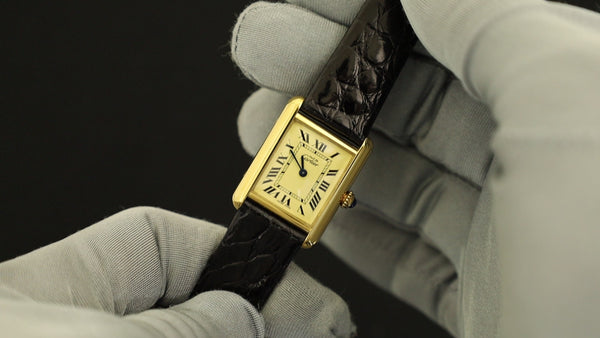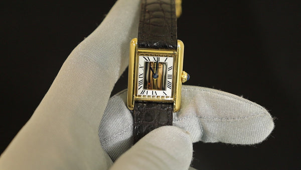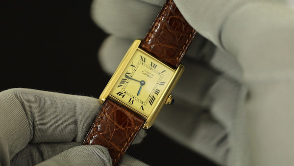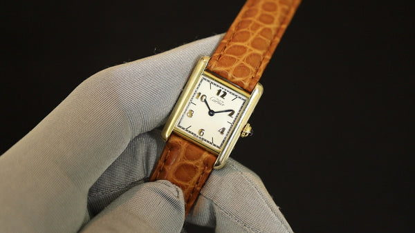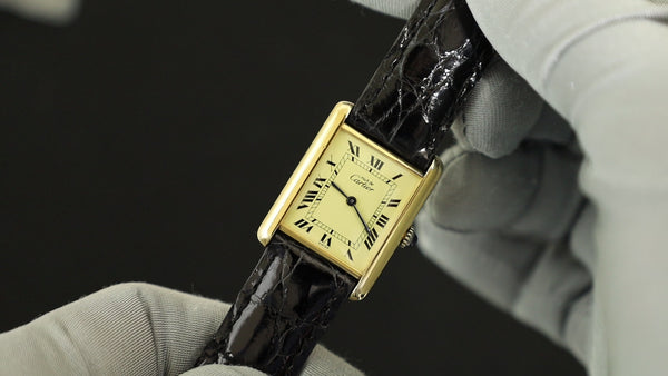 カルティエ マストタンク SM 5057001 クォーツ Cal.057 SV925 革 純正尾錠(GP)ストレートローマン文字盤 オーバーホール済み