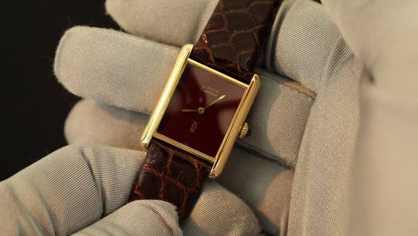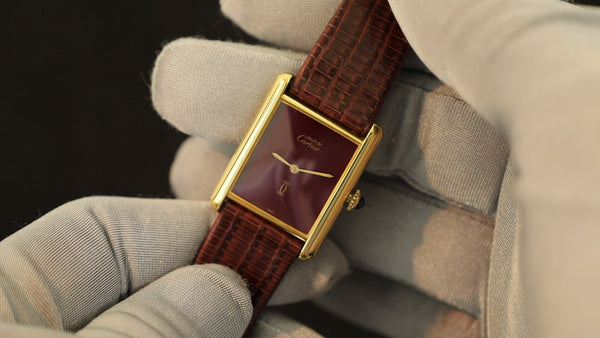 カルティエ マストタンク SM 手巻き Cal.78-1 SV925 革 純正尾錠(GP) ガーネットダイアル ボルドー文字盤 オーバーホール済み