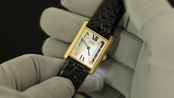 カルティエ マストタンク MM 2416 クォーツ Cal.057 SV925 革 純正尾錠(SS) ホワイト飛びローマン文字盤 オーバーホール済み