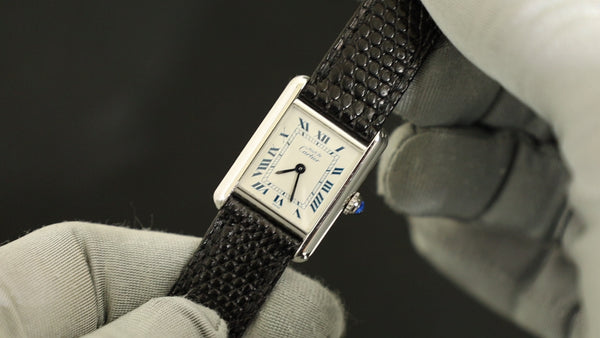 カルティエ マストタンク LM 手巻き Cal.78-1 SV925 革 純正尾錠(GP) アイボリーローマン文字盤 オーバーホール済み