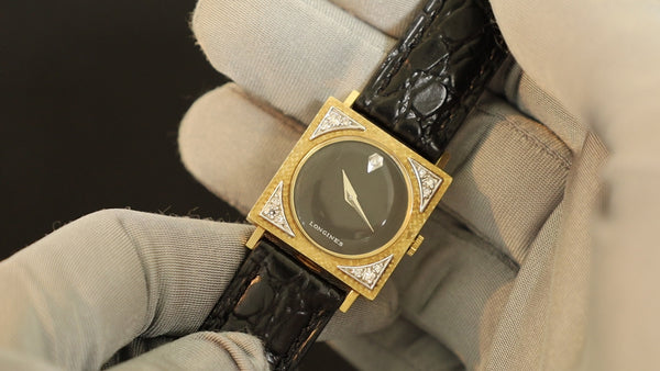 ロンジン タキシードウォッチ 手巻き Cal.528 14KT 革 ブラック文字盤 25.5×25.5mm 1950年代 オーバーホール済み