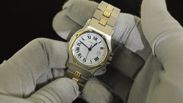 カルティエ サントス オクタゴン LM 2966 自動巻き Cal.077 SS/YG SS/YG ホワイトローマン文字盤 オーバーホール済み