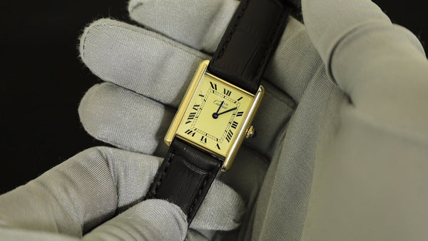 カルティエ マストタンク LM 590005 クォーツ Cal.90 SV925 革 純正尾錠(GP)ストレートローマン文字盤 オーバーホール済み