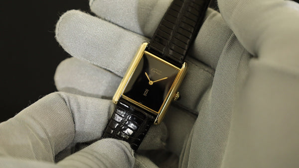 カルティエ マストタンク SM 手巻き Cal.- SV925 革 純正尾錠(GP)オニキス文字盤 1976年頃~1981年頃 オーバーホール済み