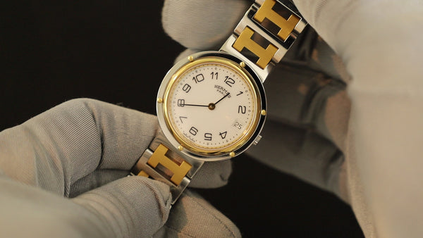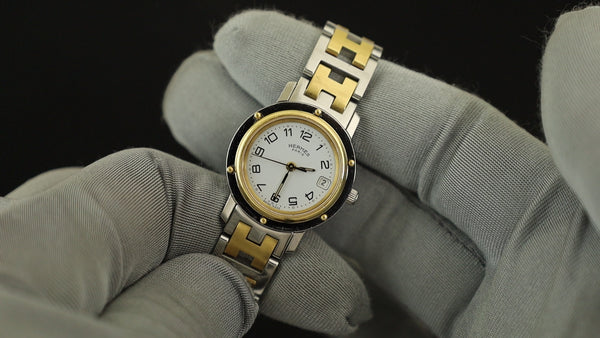 エルメス クリッパー ボーイズサイズ クオーツ SS / GP ホワイトアラビア文字盤 30.0mm