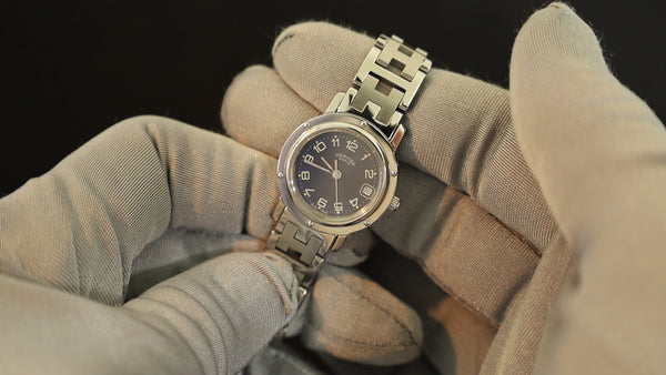 エルメス クリッパー CL6.710 クォーツ SS SS ブラック文字盤 箱 オーバーホール済み