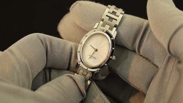エルメス クリッパーオーバル CO1.210 クォーツ Cal.976.001 SS SS ホワイトギョーシェ文字盤 オーバーホール済み