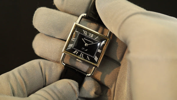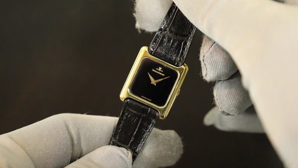 ジャガー・ルクルト スクエアケース 6141.21 手巻き 750 革 純正尾錠(GP)オニキス文字盤 オーバーホール済み