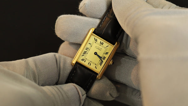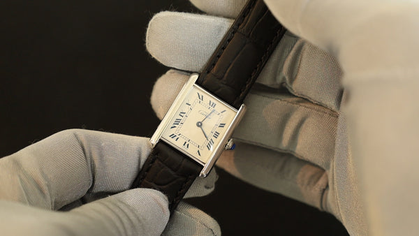 SOLD Cartier Must Tank LM 590005 Quartz Cal.690 SV925 Leather Genuine Buckle (GP) Opalan Dial Overhauled and Finished to Like New