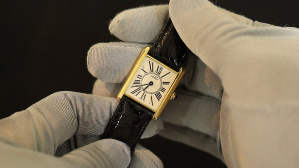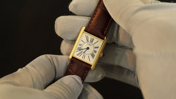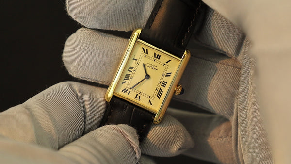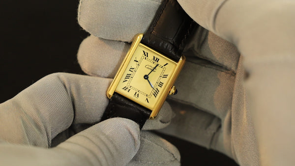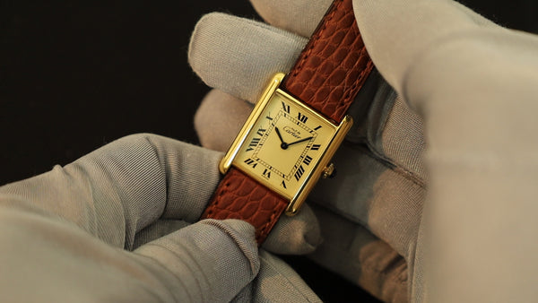SOLD Cartier Must Tank SM 5057001 Quartz Cal.057 SV925 Leather Genuine D-buckle (GP) Opalan dial Overhauled
