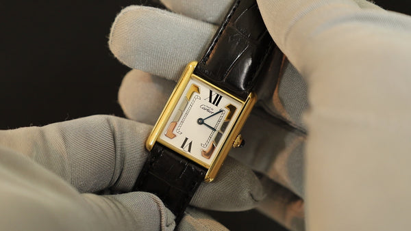 SOLD Cartier Must Tank LM 590005 Quartz Cal.90 SV925 Leather Genuine D Buckle (GP) Trinity Dial Overhauled