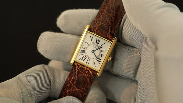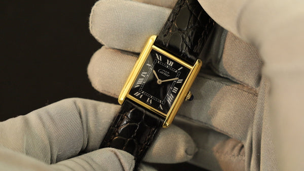 SOLD Cartier Must Tank LM Manual winding Cal.78-1 SV925 Leather Genuine buckle (GP) Black Roman dial Overhauled New finish