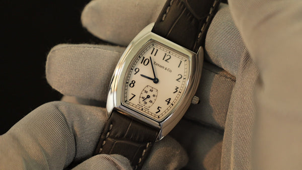 SOLD Tiffany Classic Tonneau Small Second 515.1018 Quartz Cal.980-163 SS Leather Genuine Buckle (SS) White Arabic Dial Overhauled