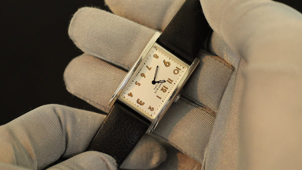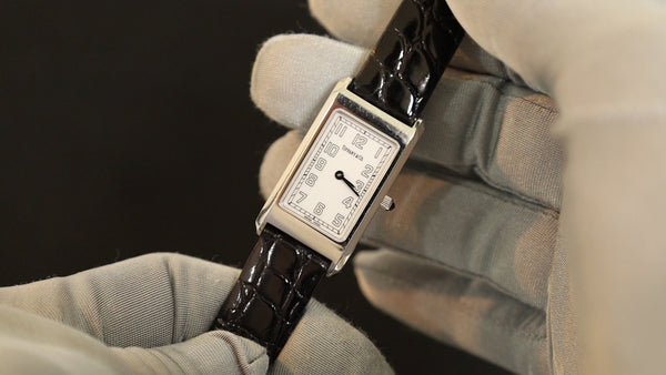 SOLD Tiffany Classic Square Rectangular Quartz Cal.901.001 SS Leather Genuine Buckle (SS) White Arabic Dial Overhauled