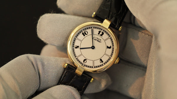 SOLD Cartier Must Vendome VLC LM W1009754 / 1861 Quartz Cal.690 SV925 Leather Genuine Buckle (GP) Gold Jump Arabic CC Dial Overhauled