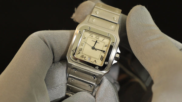 Cartier Santos Galbee LM W20025D6 / 987901 Quartz Cal.687 SS SS Ivory Roman Dial Box Warranty (1993) Overhauled