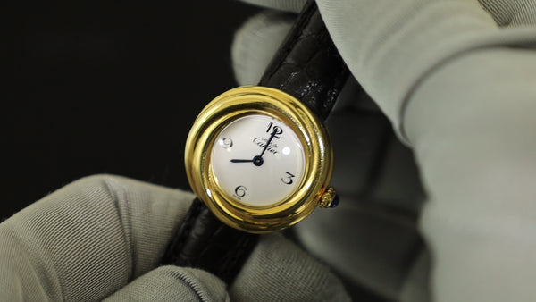 Cartier Must Trinity W1010844/2735 Quartz Caliber 157.06 SV925 Leather Genuine D-buckle (GP) White Dial Box Overhauled