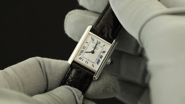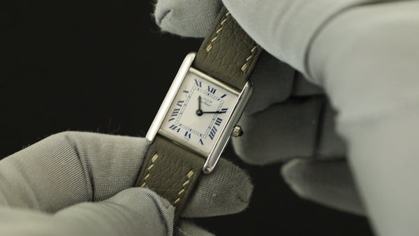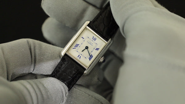 Cartier Must Tank SM 3 66001 Quartz SV925 Leather Genuine Buckle (GP) Gray Roman Dial Box Booklet Warranty (1983) Tag Completely serviced (full maintenance) at a Cartier boutique