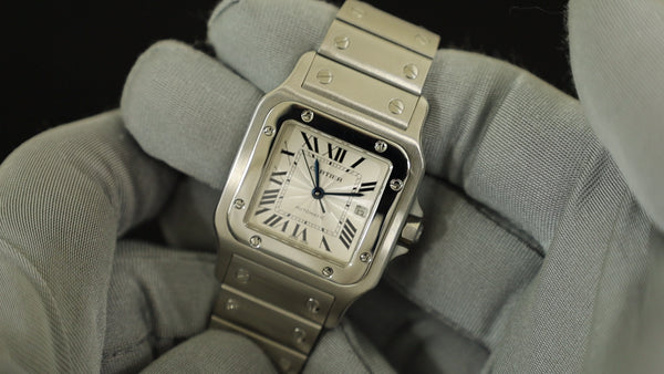 Cartier Santos Galbee LM 2319 Automatic Caliber - Stainless Steel Silver Guilloche Dial 29 x 40mm Box Booklet Overhauled