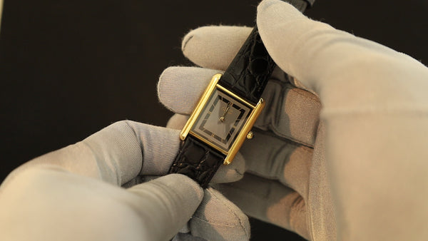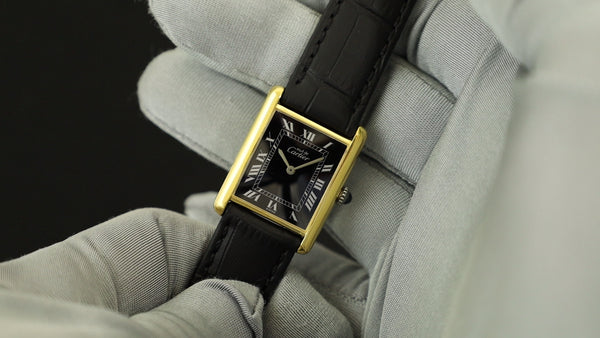 Cartier Must Tank SM Manual Winding Caliber - SV925 Leather Strap with Genuine GP Buckle, Onyx Dial, Circa 1976-Circa 1981, Overhauled