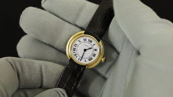Cartier Must Vendôme VLC SM Quartz Cal.81 SV925 Leather Strap with Genuine GP Buckle, Onyx Dial, Overhauled