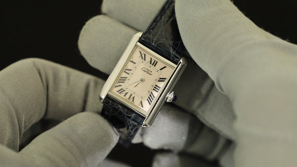 Cartier Must Tank GM (XL) 2414 Quartz Movement, SV925 Leather, Aftermarket Buckle (SS), White Roman Dial, Complete Serviced at a Cartier Boutique