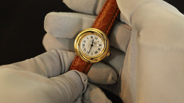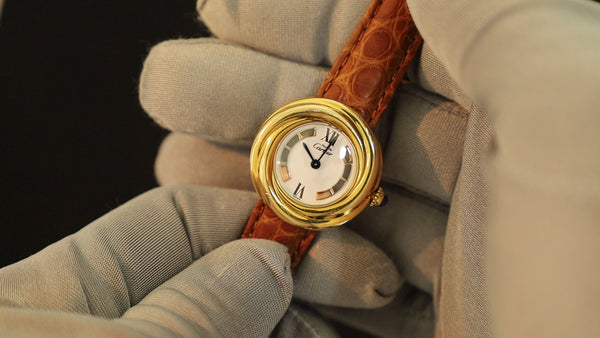 Cartier Vendôme Trinity VLC SM 881004 Quartz Caliber 81 750 Leather Strap with Genuine GP Buckle, White Roman Dial, Overhauled