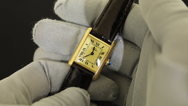カルティエ マストタンク SM W1003153 / 5057001 クォーツ Cal.057 SV925 革 純正尾錠(GP)アイボリーローマン文字盤 オーバーホール済み 新品仕上げ済み