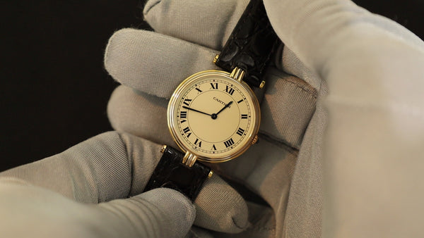 Cartier Vendôme VLC SM Trinity 81004 Quartz 750 Leather Watch with Genuine GP Buckle, White Roman Dial, Completely Serviced at a Cartier Boutique