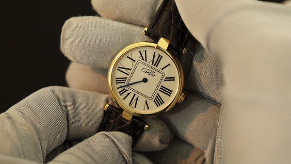Cartier Must Vendôme VLC SM Quartz Cal.690 SV925 Leather Strap with Genuine GP Buckle, Ivory Roman Dial, Overhauled