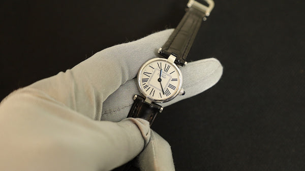 Cartier Must Vendôme VLC LM W1007065/1860 Quartz Caliber 90.06 SV925 Leather Strap with Genuine D-Buckle (Stainless Steel) Opalescent Dial Overhauled