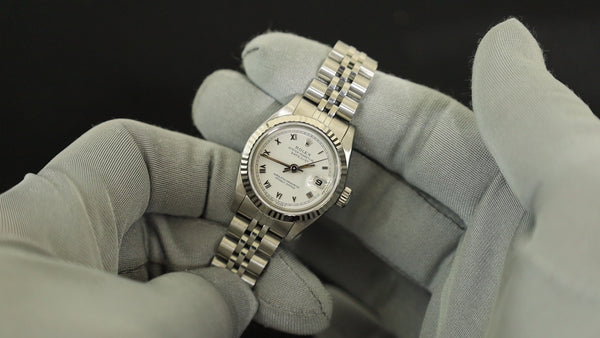 Rolex Lady-Datejust 69174 Automatic Caliber 2135 Stainless Steel/White Gold Stainless Steel White Roman Dial No. 9 (1985) Overhauled