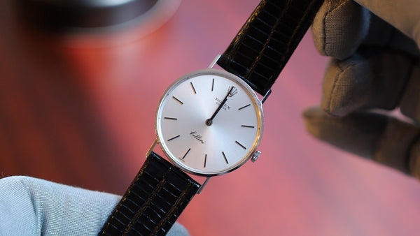 SOLD Rolex Cellini 4014 Manual winding Cal.1600 750 Leather Genuine buckle (GP) Silver dial No. 39 (1973) Overhauled