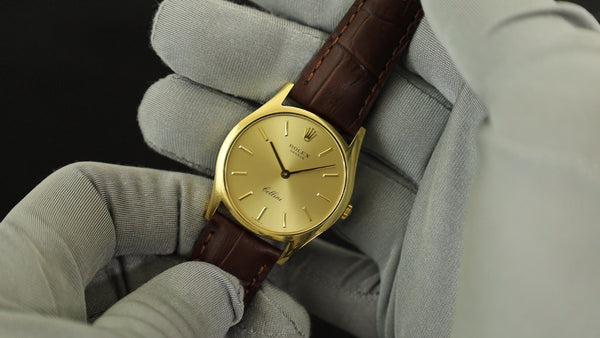 SOLD Rolex Cellini 5112 Manual winding Cal.1602 750 Leather Genuine buckle (750) Champagne dial N series (1991) Overhauled