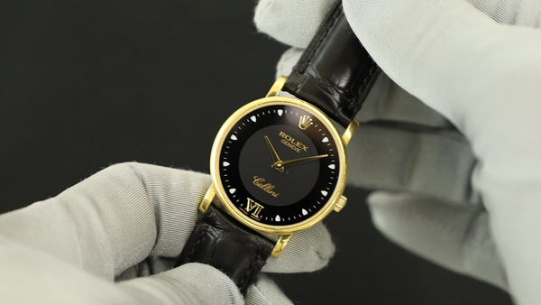 Rolex Cellini 5115 Manual Winding Caliber 1602 750 Leather Strap with Genuine Buckle (750) Black Dial A Series (1998-1999) Overhauled