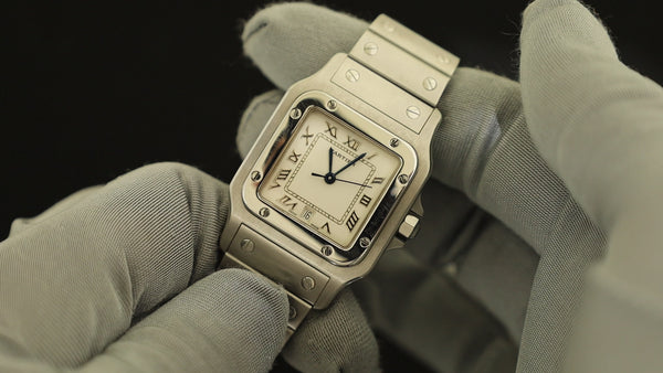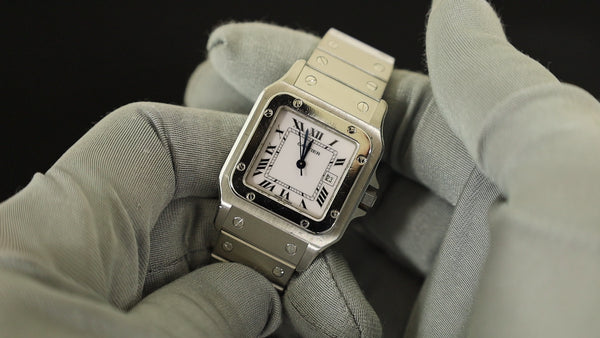 Cartier Santos Galbee LM W20025D6 / 1564 Quartz Cal.87 Stainless Steel Ivory with Silver Roman Dial Overhauled