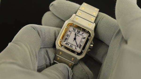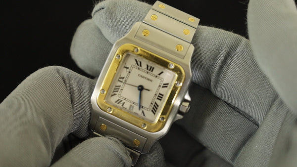 Cartier Santos Galbee LM 81036283 / 1172961 Automatic, Stainless Steel/Yellow Gold, White Roman Dial, Completely Serviced at a Cartier Boutique, New Bracelet Replaced