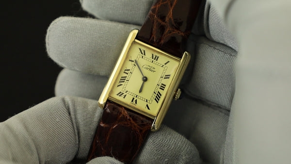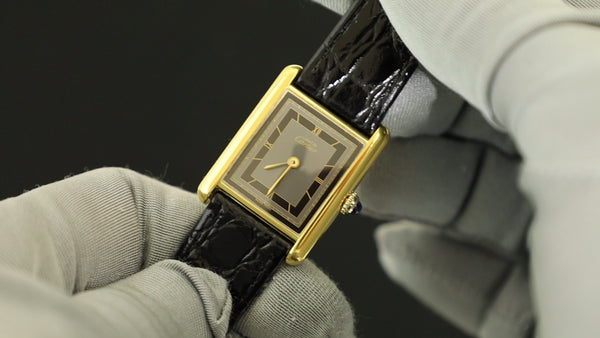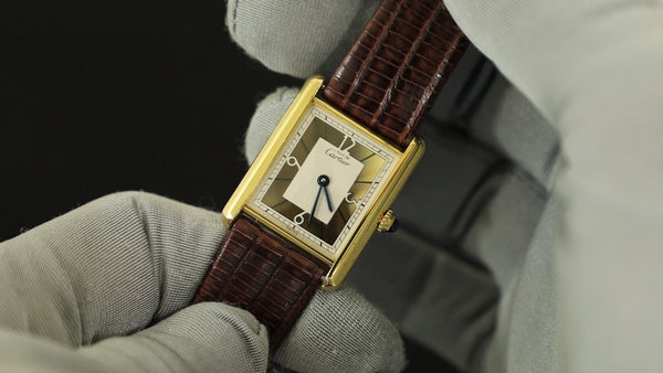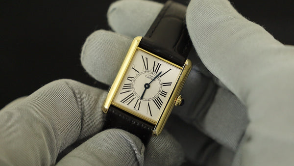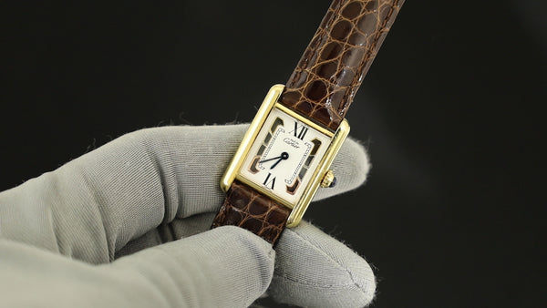 Cartier Must Tank SM 5057001 Quartz Caliber 057 SV925 Leather Genuine D-buckle (GP) Arabic Dial Circa 1982-1995 Box Warranty Card Overhauled