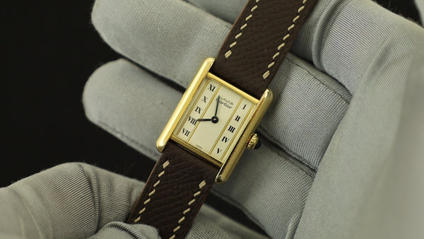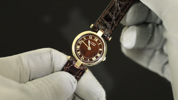 Cartier Must Vendôme VLC SM 18 Quartz Cal.81 SV925 Leather Strap with Genuine GP Buckle, Mahogany Roman Dial, Box, Overhauled