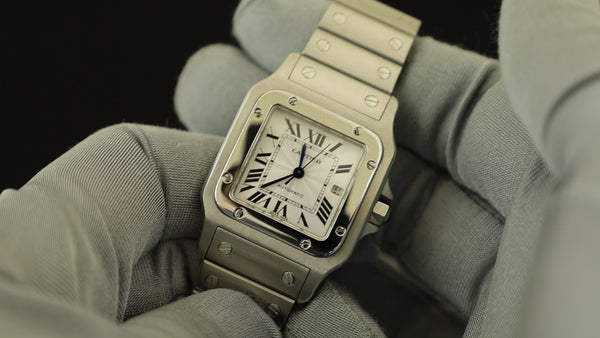 Cartier Santos Galbee LM 2960 Automatic Stainless Steel Watch with White Roman Dial. Completely serviced at a Cartier boutique.