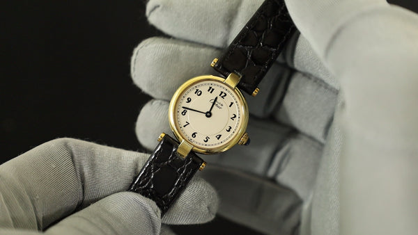 Cartier Must Vendôme VLC SM 590004 Quartz Caliber 90 SV925 Leather Strap with Genuine GP Buckle, Arabic Dial, Overhauled