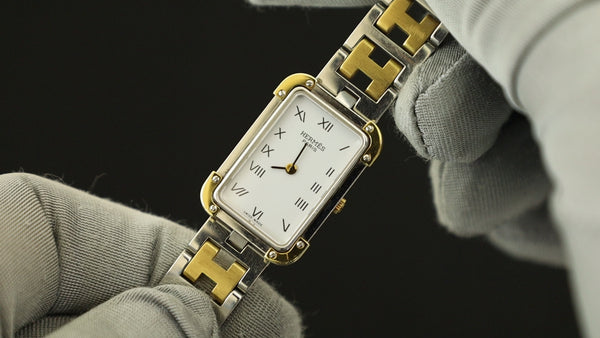 Hermès Cloajour CR1.240 Quartz Cal.976.001 SS/GP SS/GP White Dial Box Case Warranty (2008) Overhauled