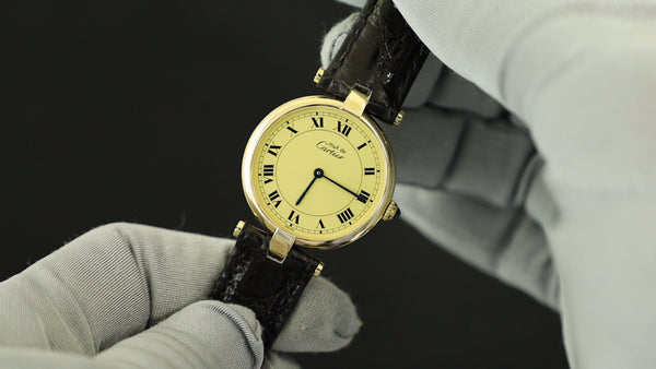 Cartier Must Vendôme VLC LM 590003 Quartz Caliber 90 SV925 Leather Strap with Genuine GP Buckle, Ivory Roman Dial, Overhauled