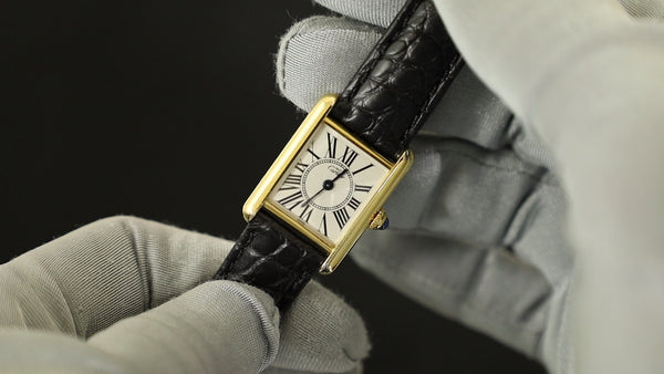 Cartier Must Tank LM 1615 Quartz Caliber 90 SV925 Leather Watch with Genuine D-Buckle (GP) Opalescent Dial Overhauled