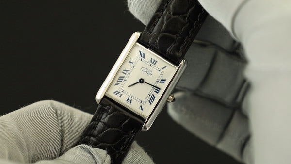 Cartier Must Tank LM 681006 Quartz Caliber 81 SV925 Leather Strap with Genuine Stainless Steel Buckle, White Roman Dial, Overhauled
