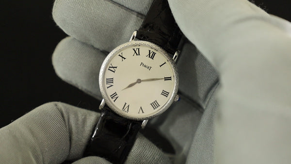 Piaget Round 9026 Manual Winding Cal.9P1 750 Leather Strap with Genuine Buckle (750) White Roman Dial 30mm Box Case Dust Bag Overhauled