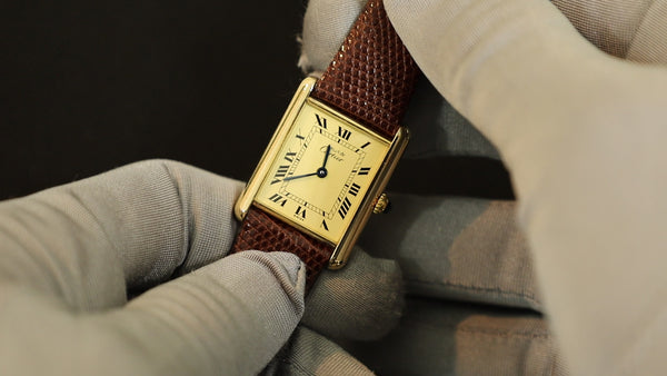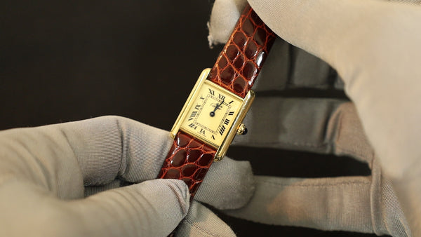 Cartier Must Tank SM 5057001 Quartz Cal.057 SV925 Leather Buckle (GP) Ivory Roman Dial Overhauled
